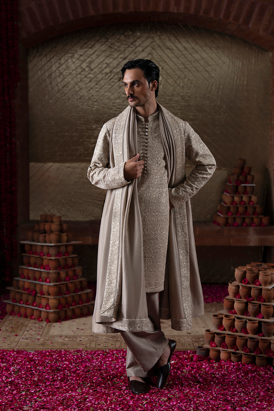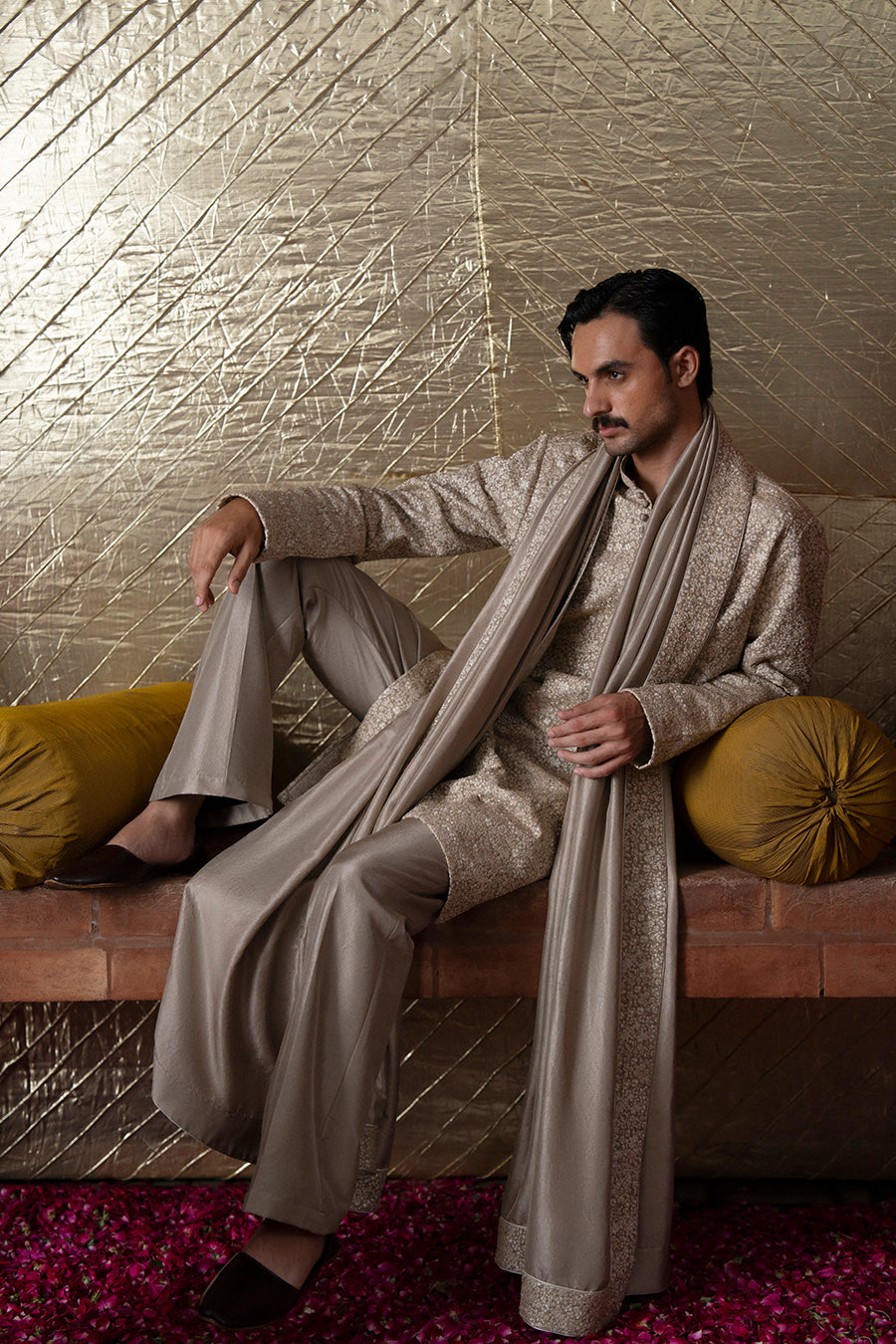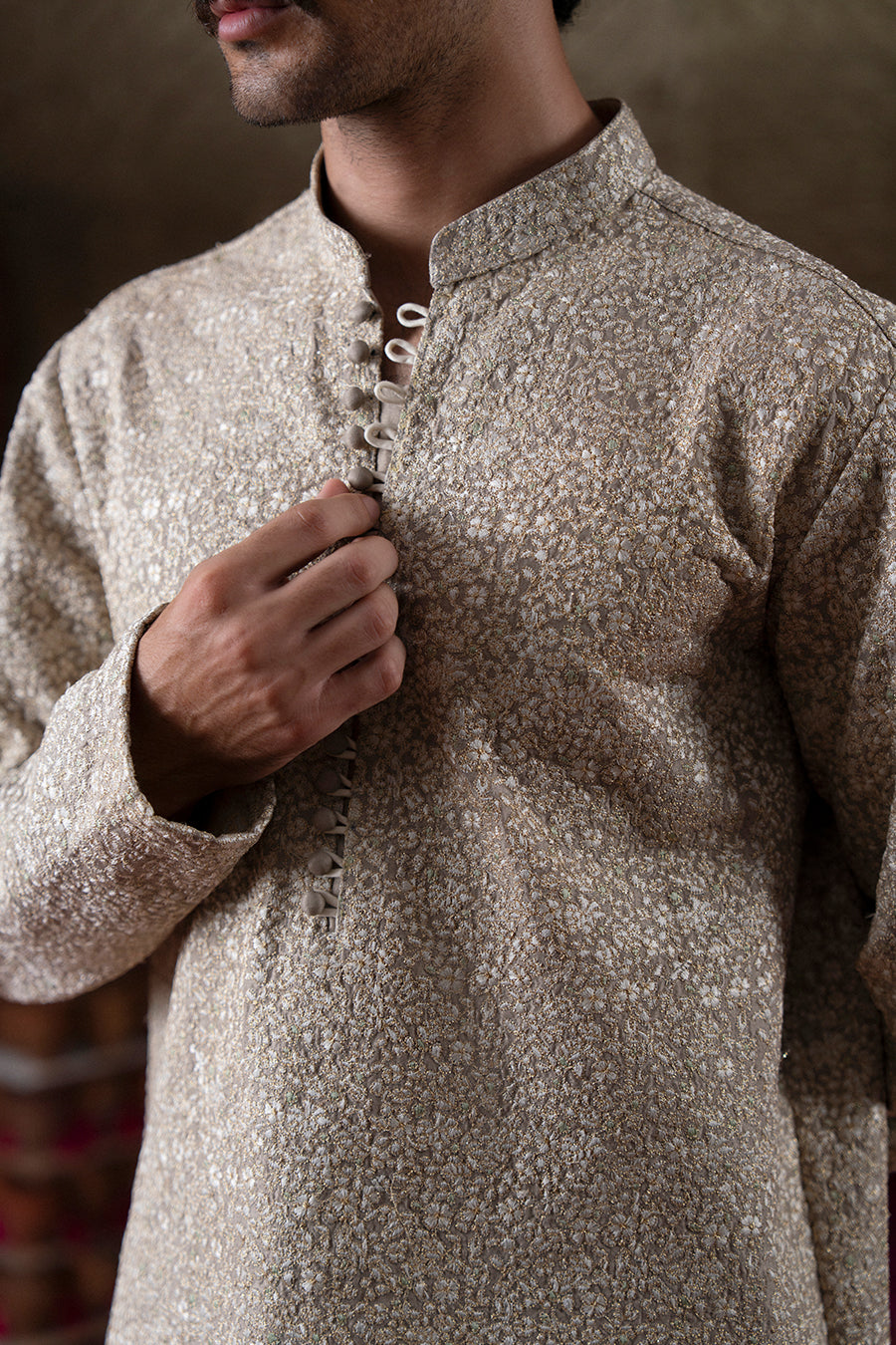Crafted with intricate self-texture embroidery, this piece carries a refined yet festive charm. The unique tone adds a fresh, standout appeal for men, making it perfect for those who prefer sophistication with a touch of celebration.